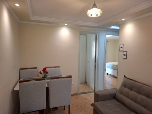 Apartamento mobiliado, andar baixo, um lance de escada somente. Possui 50m² com 2 dormitórios, sala 2 ambientes, cozinha, lavanderia, 1 banheiro e 1 vaga de garagem rotativa livre (não tem vaga presa).